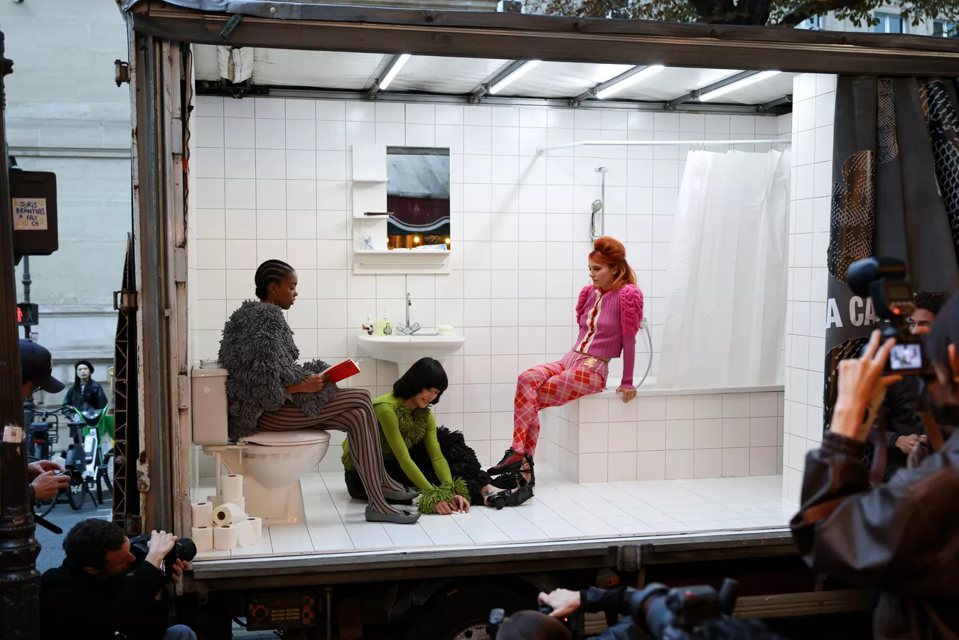 عارضات أزياء يؤدين عروضهن خلال عرض أزياء "باولا كانوفاس ديل فاس" النسائي لربيع/ صيف 2026، ضمن أسبوع الموضة في باريس